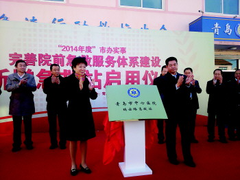 ◤12日,青岛市副市长栾新和青岛市卫计委主任杨锡祥共同为瑞安路急救站揭牌。
