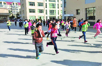 11月12日,新都小学开展了“找火灾隐患,保家庭平安”系列安全教育活动。图为听到警报声后,随堂教师迅速组织学生捂住口鼻从教学楼中有序撤离。