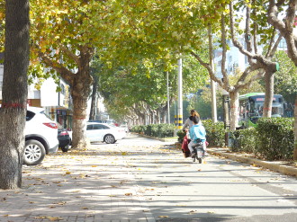 12日,枣庄出现大风天气,不少行道树的叶子被强劲的风“拽”下来。当天虽然天气晴朗,但温度较低,冷风更是让市民感受到了初冬的寒冷。 本报记者 袁鹏 摄影报道