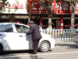 12日,记者在文化路与解放路的十字路口处看到,一位老人在车辆等候红灯时,逐个进行乞讨。见此状,周边有好心市民上前劝阻,老人并不理会,继续着自己的“工作”。据周边店商反映,近几日老人一直在马路中间向过往车辆乞讨,让人看着都替他捏把汗。 (于鹏 摄影报道)