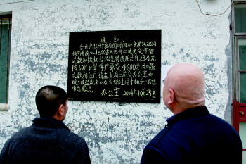 张店城市田园小区居民在看物业的收费通知(资料片)。