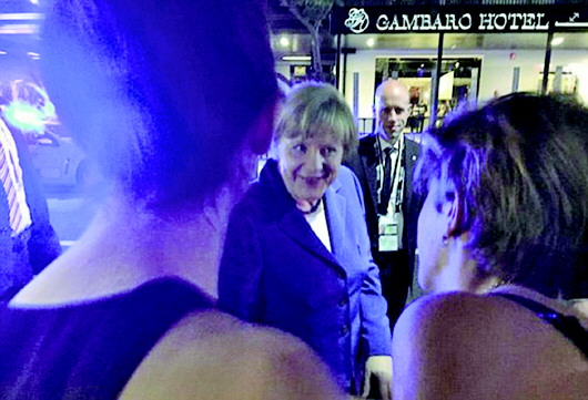 在布里斯班最热门的酒吧街卡克斯顿,默克尔的突然到访引来酒吧客人尖叫连连。有民众用德语对她来澳表示欢迎,默克尔以英语问对方怎么懂得说德语,相当亲民。她沿途多次停下来,与众人握手还玩起了自拍。有人在社交网站上写道,真正的领导人就该像这样,与当地民众混在一起。 (综合)