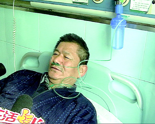16日上午,李先生正在急症科病房中治疗。 见习记者 王晓莹 摄