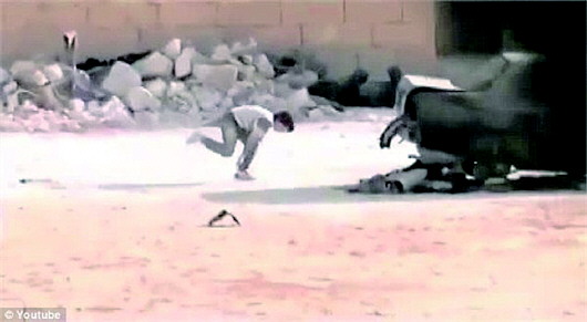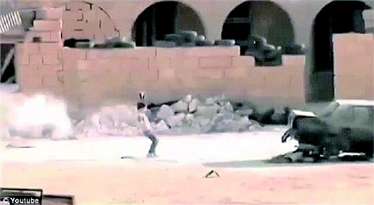 视频题为《叙利亚英雄男孩》,长度约1分钟。背景是一片废墟,一名小男孩从画面左方跑向右方数米开外的一辆汽车残骸。途中,他身旁突然冒出一串白烟,看似子弹打在地上激起的尘土,小男孩高举双臂,倒向前方,似乎中弹。数秒后,他爬起来,继续跑向汽车,从车后拉出一名穿粉色上衣的小女孩往回跑。子弹再次在他们身边激起阵阵尘土,所幸没有打中,两人消失在一堵墙后。