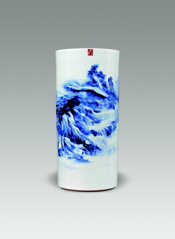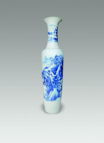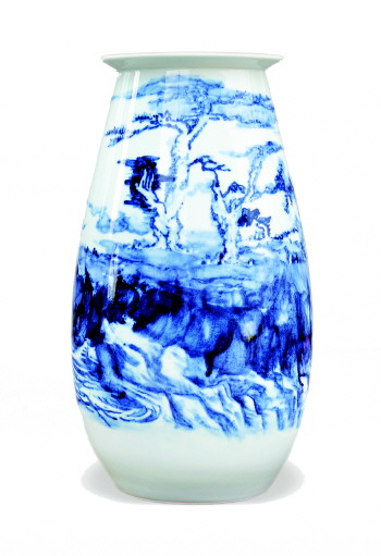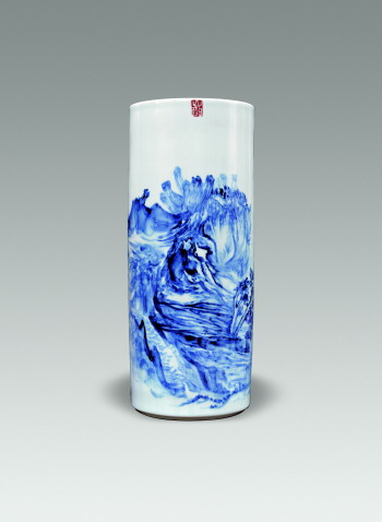 画家在宣纸上作画,那是信手拈来、游刃有余。当宣纸换成了瓷瓶,平面转向了立体,水墨变成了釉料,对书画家而言无疑是一个新的挑战。对此,曾有工艺美术大师表示,绘画是艺,但绘瓷还包含了技的成分,绘制青花有一个很重要的技术叫“分水”,是大多数绘瓷画家力所不逮的技术。青花“分水”是青花料在泥坯上分出各种深浅的明暗层次,单一的色料因此富有了浓淡不一的变化,产生如同水墨的效果。在多次尝试后,叶建新得出:青花“分水”的绘制工艺和画水墨画是完全不同的。瓷器是立体的,再加上坯体松脆,所以用笔必须保持高速度,做到眼明、心细、手准,不允许细描细绘,画时略一停顿,即笔势凝滞,烧成后就会产生很重的“水浪”。而且“分水”的速度必须很快,否则水分太多会损坯体……瓷上创作是必须依靠长期实践和熟练的技巧才能掌握的高深学问。