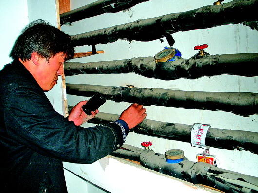 为这位居民家冲管之后,工作人员又立即赶到十一号楼,这里有一户居民反映家中有两片暖气片不热。赵师傅摸了摸暖气片,“跟刚才那户一样,泥沙堵住了管道,冲一下就行”。说着,工作人员进入卫生间进行维修,为居民解决供暖难题。