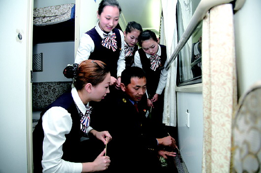 工作了11年的赵侦峰创造了自己独特的工作方法,“快乐工作法”。“其实我并没有刻意地去追求什么固定的方法,就是感觉与乘务工作有缘、与乘客有缘,想让乘客在一路漫长的旅程中感受到快乐。”赵侦峰说。