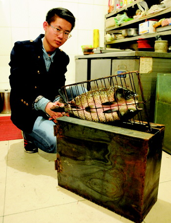 烤鱼已经成为时下人们比较喜爱的佳肴之一。由于制作工艺复杂,一般人只会到餐馆去满足自己对美食的渴望,而寿光19岁的大学生韩放歌却在品尝佳肴时开动脑筋搞起了发明,还从这看似简单的烤鱼中寻觅到了无限的商机。