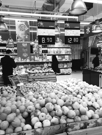 随后,记者又来到北海路上一家超市,个头较大的沂源产苹果价格达到了8.9元一斤,小一点的烟台产苹果价格也在4.8元每斤。记者观察,苹果柜台前的顾客寥寥无几,不少顾客看到价格后转而开始选购其他水果。