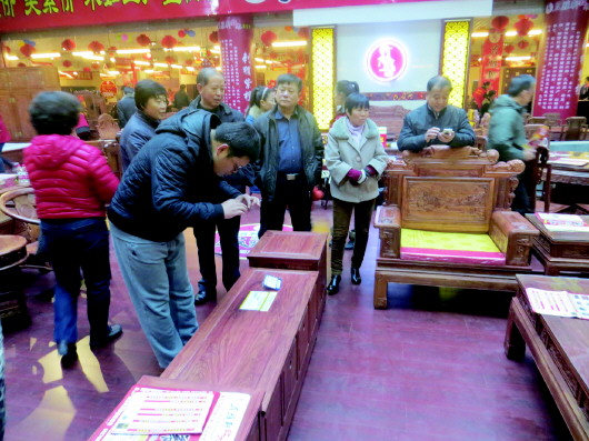 位于市区黄河五路渤海六路的滨州最大红木生活馆——茗雅轩16日开启试营业,这也是目前为止滨州面积最大、品种最全的红木家具生活馆。开业当天,商家推出了丰富多彩的促销活动,包括一元秒杀、砸金蛋等活动,吸引了众多市民前来参加。活动期间红木家具按厂价抢购,整个活动持续了大约4个小时。 本报记者 韩志伟 摄影报道