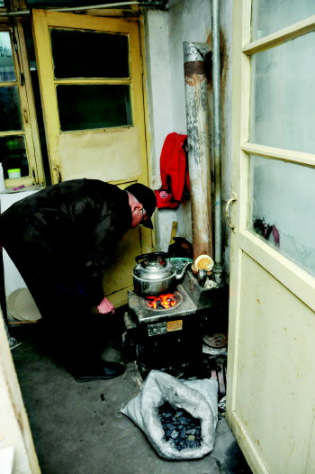 15日,家住张店世纪花园的一名小女孩脚蹬热起来的暖气片(右图),张店洪沟路10号楼一户居民往煤炉中添煤取暖(左图)。据天气预报,周二淄博最低温将降至-3℃,天气渐冷,温暖对市民越来越重要,但仍有不少市民家中暖气“失约”,或取暖不易。如果您遇到供暖难题或对供暖有建议可致电本报问暖热线3159019,我们愿尽力帮您让这个冬天更温暖。 本报记者 王鸿哲 摄影报道