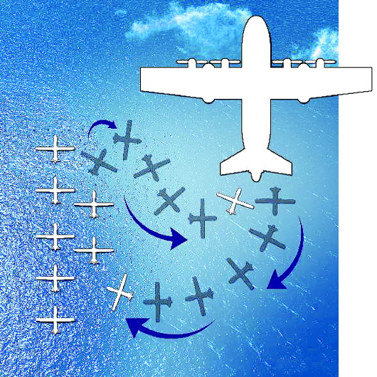 军方绘制的想象图描绘了用飞行器投放大批无人机的场景。
