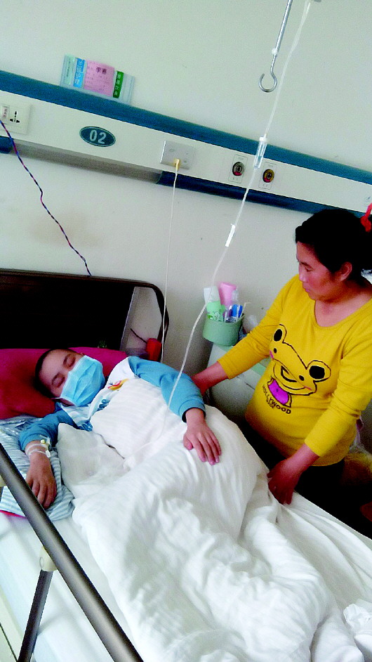 闫修红说,这次化疗剂量很大,孩子两只手都打上了。看李骞化疗时老想吐,脸烧得通红,手上胳膊上都被打青了,闫修红心里特别不是滋味,她三天晚上都不敢睡觉,一直守着孩子。李骞特别懂事,总告诉妈妈他不疼。