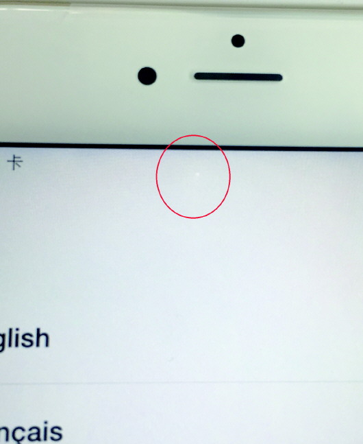 红圈内便是iPhone6 plus屏幕上的瑕疵。 王先生供图