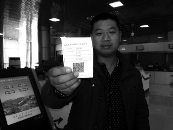 郝先生手持带有二维码的受理单办理审批业务。本报记者 庄子帆 摄
