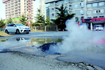 “这里喷蒸汽是凌晨5点多开始的。”环卫工人马女士告诉记者,蒸汽柱当时有三四米高,地面都被顶开了。蒸汽化作水流迅速涌出,没过了大面积的路面。“早上6点多的时候,对面学校门口送学生家长拿起电话,开始联系热力公司。”马女士说,眼看着冲出地面的蒸汽越来越大,围观的居民和过路的行人开始慌张起来,路面温度一直很高,害怕路面出现塌陷,大伙都积极联系相关部门前来检查维修。