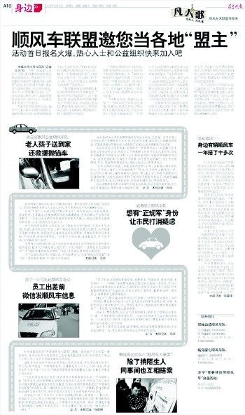 金飘带公益顺风车队:打车难,顺路捎人一程
