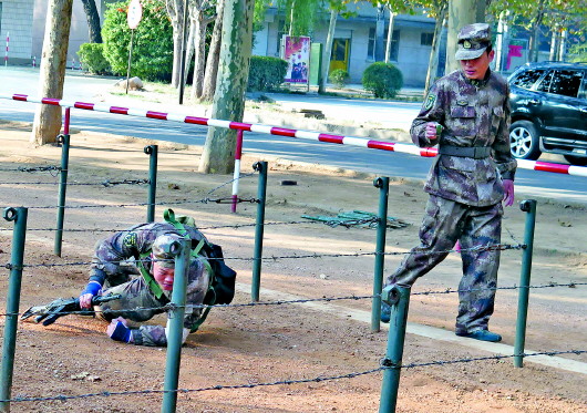 18日,正在山东省军区某部新兵营集训的新兵,经过近三个月的艰苦训练后,进行汇报考核。他们即将进入各基层连队、海防哨所。