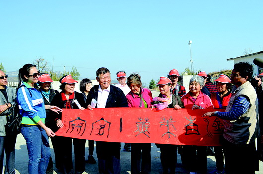 10月25日,十亩园社区20多名居民受莱芜广播电视台与莱芜市旅游局邀请,来到莱芜市政府广场参加“济莱一家亲大篷车计划”启动仪式。 (许建立)