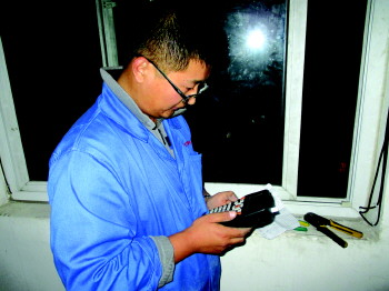 摸黑完成了所有的布线工作,输入账户名和密码登陆时却老是无法连接,宽带用户和记者都不由自主的叹了口气。但崔宗慧却没有灰心,这种情况对他来说早已经驾轻就熟。拨通了提前与公司联系留下的值班人员电话,按流程进行了水晶头线序、网卡等一系列的排查工作后,崔宗慧终于锁定为ONU端口故障,联系网管中心将数据改到11端口后,用户家里终于可以正常上网了。