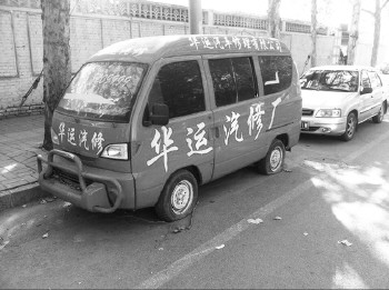 现场处理的民警按照车上的标识,找到了该汽修厂的负责人,该负责人称由于车辆已经无法开动,院子里也没地方安排,就停在路边停车位上了,自己会马上安排人员,争取在几天内就把车拖走。