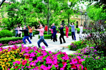 早上居民在绿城园区练太极