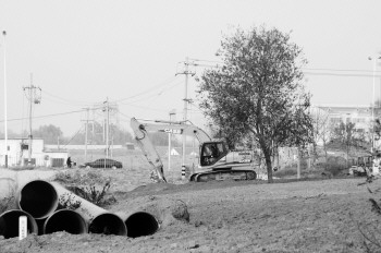 近日,经过几天的机械平整,岔河东大道道路两边的荒草地已被平整一新,为绿化做好了准备。