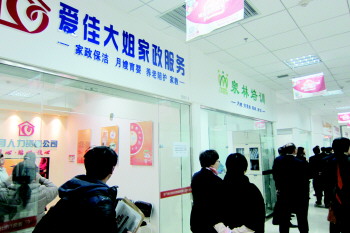 “以前找个合意的保姆得跑大半个青岛。现在只在这个广场里逛就行了。”女儿快生孩子了,上午,家住福州路的市民李女士赶来新开业的家政超市为孩子提前找保姆。广场中,能够提供保姆服务的家政公司不下十家,李女士选择了相对知名的几家聊了聊,初步定了三家,准备回家与女儿商量。