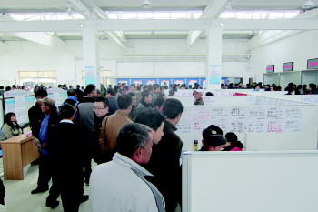 灵活务工市场开业首日举办的招聘会,吸引了大批求职人员。