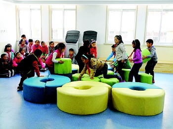 17日下午,青岛基隆路小学开展教学楼各楼层交流空间创意布置展示评比大赛,10个人一组比摆小皮凳造型。培养孩子们的创意思维、动手能力和团队合作意识。