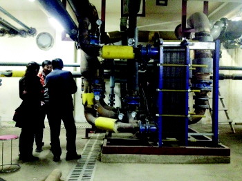 “天泰城美立方二期属于供热公司供热区域的末端,我们担心一次管网水到达后,热能消耗太多,所以就想着加两台锅炉提高水温。可在运行期间,很多居民都反映担心安全问题,我们和开发商协商后,就决定停用这两台锅炉,全部用供热单位提供的热源供热。”天泰美立方物业服务中心负责人石先生说,小区刚开始供热时,由青岛碱业股份热电分公司下属的全汇热力提供热源。根据测算,热水抵达小区时温度最高40℃,经开发商同意后,这处居民楼下建起了锅炉、循环泵以提高水温。