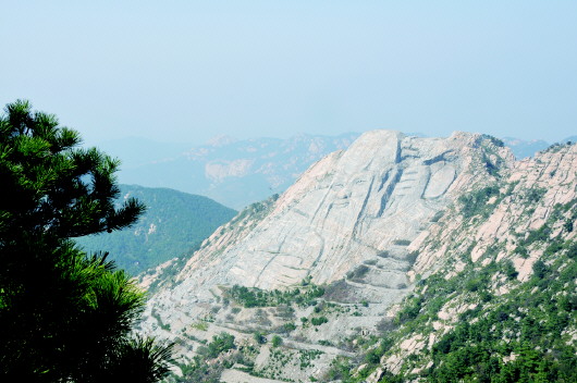 蒙山的石阶,有在天然石台上开凿,有用工整的石板铺成,亦有木阶,齐整着引领游人向山里进发。进入山门,继续往前走,看到一块巨大的石头,远远望去好像一个大桃子,上面刻着一个“寿”字,为漫长的登山之路增添不少亮色,我们拾级而上,路越来越曲折,树越来越茂盛,外面骄阳似火,里面却凉爽如秋,在青松翠柏的掩映下有一座小庙,精致而又有古代气息。