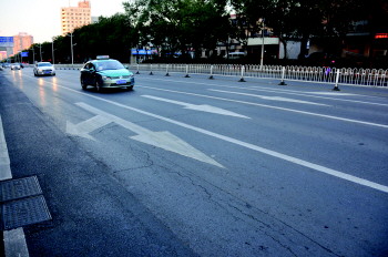 11月,柳泉路改造基本完成后,淄博又启动了对世纪路、人民路等路段20个路口的重新渠化和改造,交警大队对标线进行增设和改进,在世纪路与共青团西路南路口等设置了“逆向可变车道”,在晚高峰通过先放行左转后放行直行车辆的通行方式,借用逆向车道增设一条左转车道。在世纪路与联通路西路口增加一条左转车道,右转车道改为右转直行,提升路口通行能力。