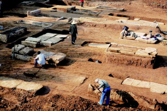 10月28日,滕州市官桥中心小学在操场施工过程中,发现了“有画像的石头”,滕州市文广新局得知情况后立即安排专业人员赶赴现场。经现场勘查,施工现场下有一处汉墓群落。截至目前,发掘面积已扩展到1200平方米,抢救性发掘出汉代家族性墓葬34座。此外,现场还出土了铜镜、灰陶罐、绿釉盘口壶、五铢钱等文物50多件。 本报记者 甘倩茹 本报通讯员 王正策 摄影报道