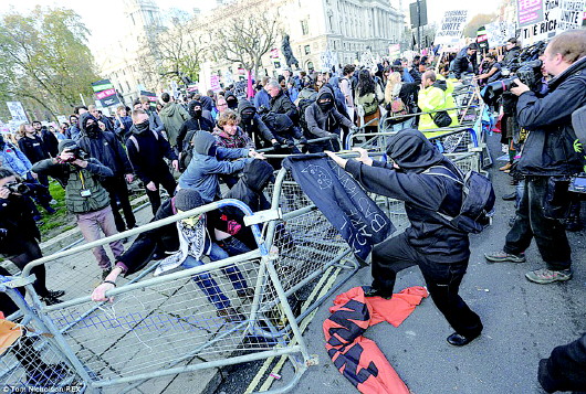 英国网友在新闻网上跟帖说:“这根本不是示威游行,这是暴力骚乱,严重影响公众生活。”