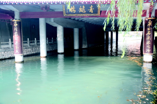 青龙桥附近的河水浑浊不见底。 见习记者 唐园园 摄