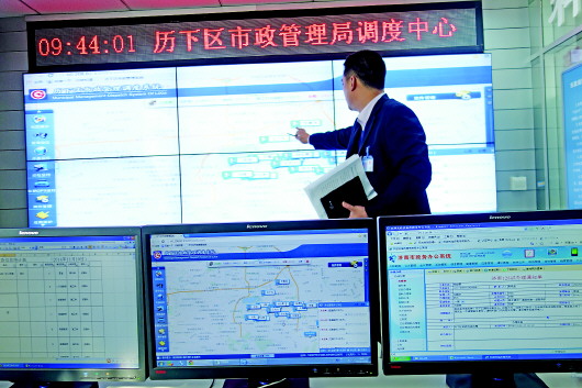 历下区市政局应急调度指挥中心可实现对井盖的实时监控。