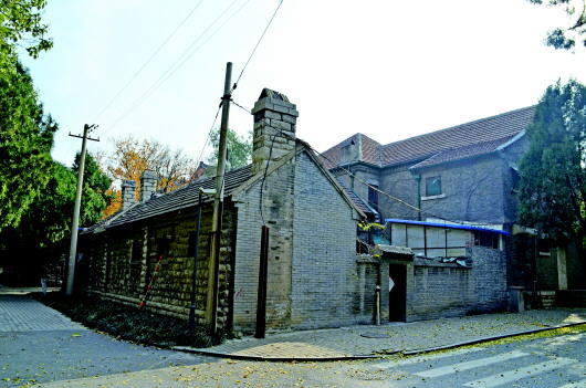 同样的情况也出现在将军庙街区和山大西校中。在将军庙街区慈云观门口,若不是有意抬头观察那个字迹不明显的牌匾,很难有人把这个普通的民居和百年古院落联系起来,而除了天主教堂较为高大且造型特殊较引人注目外,将军庙、城隍庙则早已“泯然众楼矣”。在山大新校区,原本豪华的别墅也早已破败,同普通的简易瓦房没什么区别,建筑上也没有挂有明显的说明标识。