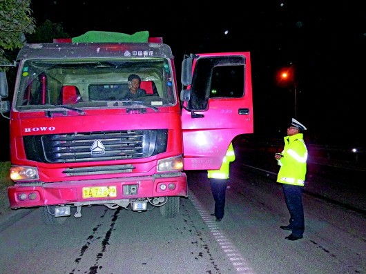 为此,晚上10点,记者和交警来到104国道,对来往大货车进行了突击检查。短短40分钟内,交警共查获10辆超载车辆,大都是运输建筑材料,包括石子、沙子等。