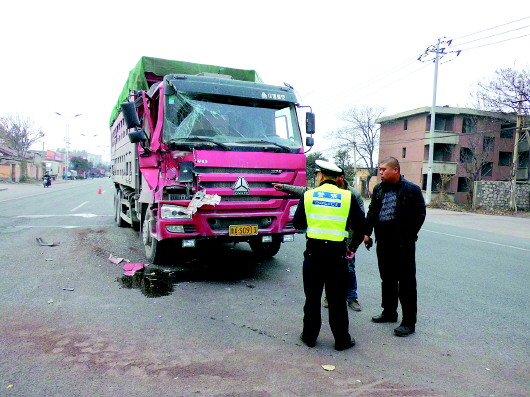 中午12点,交警的电话响了,报案说供暖公司门口发生了一起货车碰撞事故。记者跟随交警立即赶往事故现场。在现场,记者看到一辆大货车车头右侧严重受损,地上散落着很多碎片,事故中并没有人员伤亡。