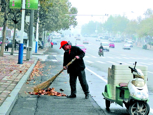 环卫工加紧清理落叶。 本报记者 支倩倩 摄