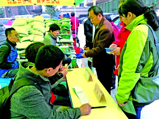 本报11月20日讯(记者 杨擎) 15日、16日,济阳曲堤农产品直销会在山东报业大厦东侧小院内举行。短短两小时,近40盒精品“曲堤”黄瓜就被市民抢购一空,爱心黄河大米一天内断货三次,直销会现场十分火爆。
