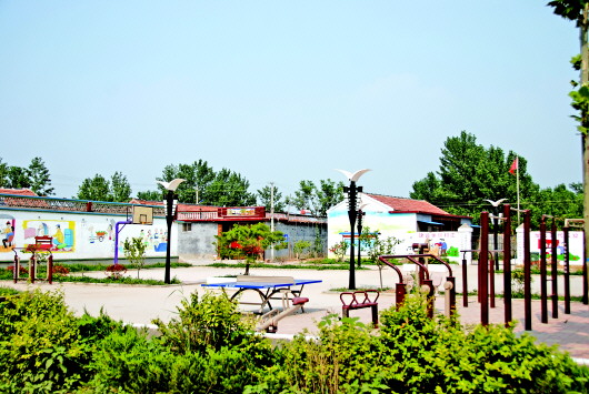 ▲村里新修建的和谐广场。 本报记者 杨擎 摄