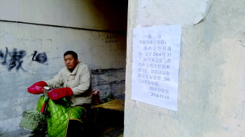 鸿运小区物业贴出切断未交取暖费居民家管道的通知。 徐良 摄