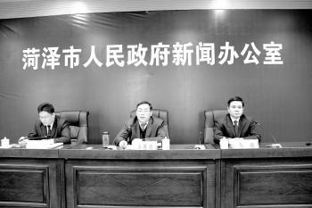 菏泽市水利局新闻发布会现场。 本报记者 李贺 摄