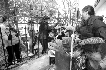 朱师傅隔着栅栏与顾客交流。