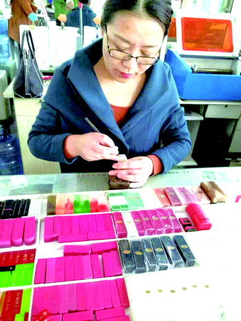 在交谈中,董国华说的最多的字眼就是“创新”。她告诉记者:“随着科技的发展,传统的手工制作已逐渐被机器设备替代,手工技艺面临后继无人的境地,发扬和保护传承工作迫在眉睫。不学习,不创新,手工刻字业就很难生存下去。”