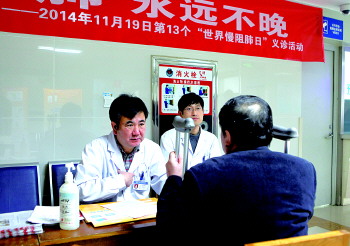 11月19日是第十三个“世界慢阻肺日”,今年的主题是“关注慢阻肺永远不晚”。日照市人民医院呼吸内科医护人员在门诊病房楼2楼大厅举办了“世界慢阻肺日”义诊活动。义诊现场,呼吸内科专家为前来咨询就诊的患者进行免费听诊和健康咨询,并为市民发放了慢阻肺知识宣传材料。