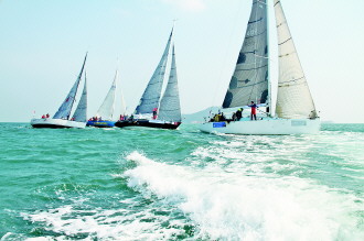 20日,在威海幸福门附近海域,10艘从韩国仁川驶来的远洋级大帆船扬帆起航。当天,中韩国际帆船赛举行,来自中国、韩国、美国等50多名选手展开竞技。