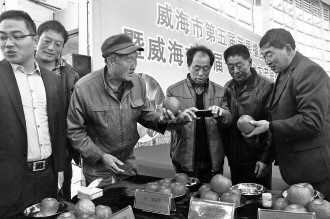 20日,由市农业局主办的第五届苹果擂台赛暨威海市首届十大名优农产品推介展示会举行,参赛样品90个,设优秀品牌奖、优秀样品奖、优秀组织奖三组奖项。编号62的传福牌红富士苹果当选第五届“苹果王”。